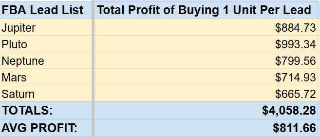 💵 Average Profit (all lead lists): $811.666